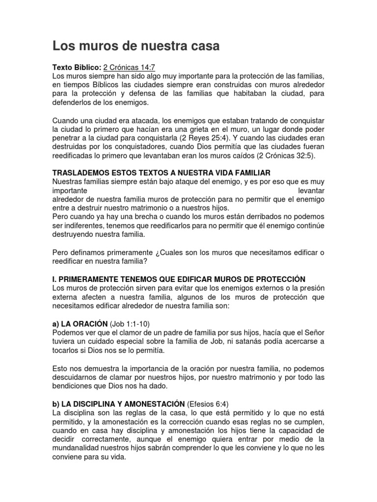 Bosquejo Los muros de nuestra casa | Biblia | Religión y creencia